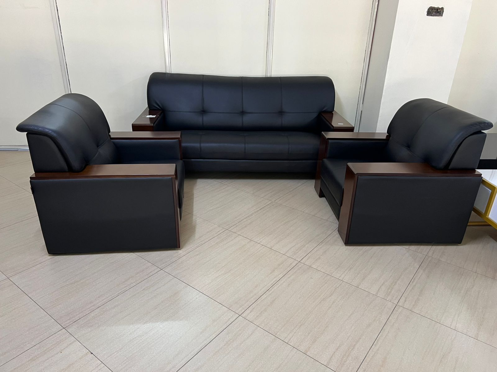Executive Office Sofa Set (3+1+1) – Leather & Wood Arms