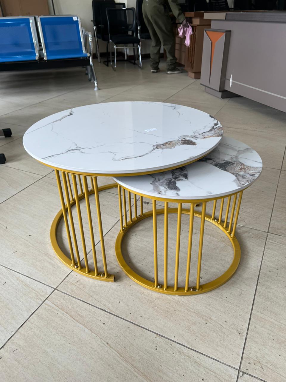 Modern Nesting Coffee Table Set (Marble Look, Mustard Gold Frame)