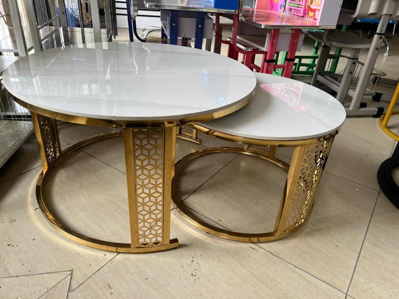 Luxury Nesting Coffee Table Set (Marble Top, Gold Accent Base)