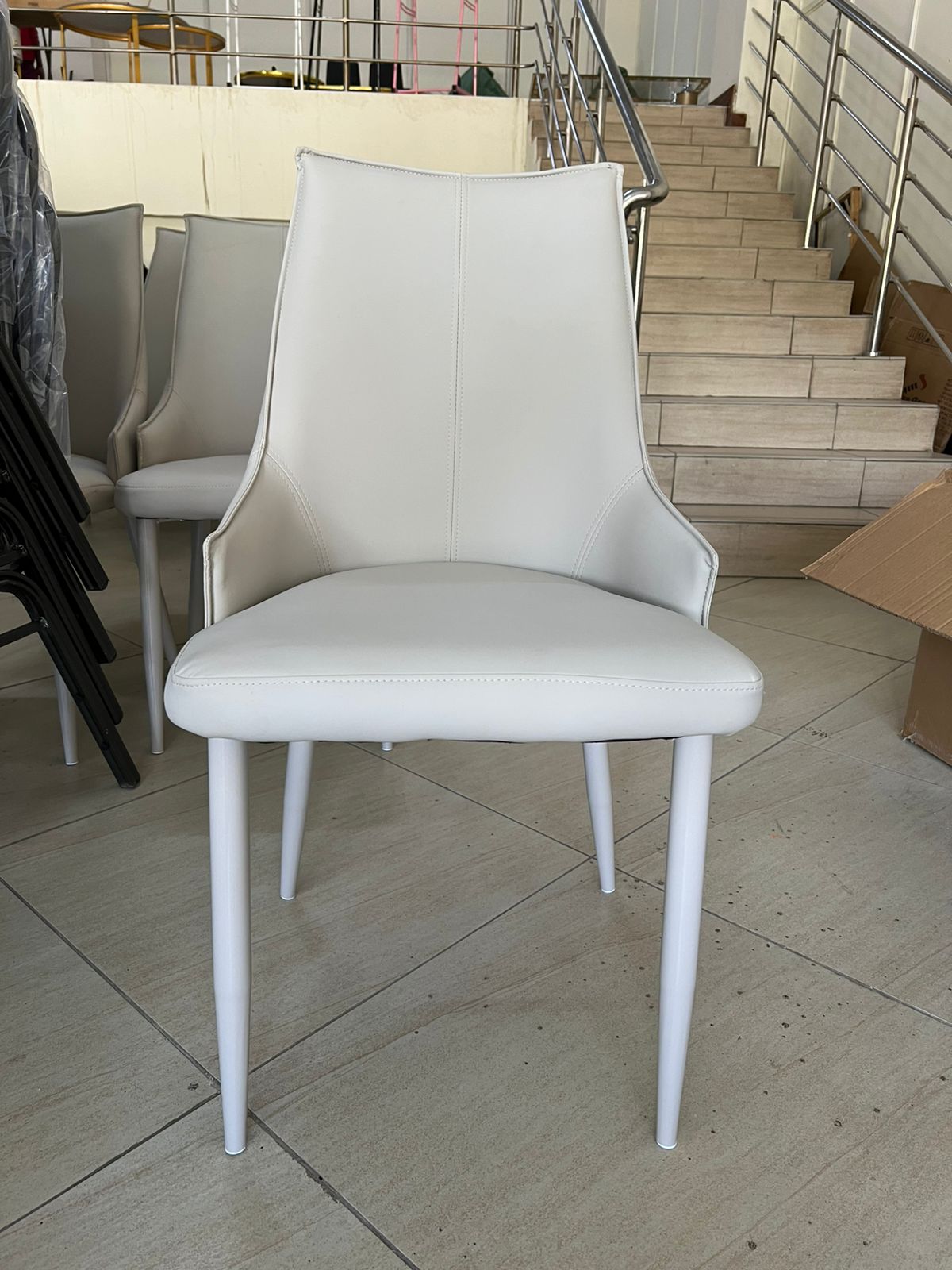 Ergonomic Curved-Back Dining Chair (White Leather, Metal Legs)