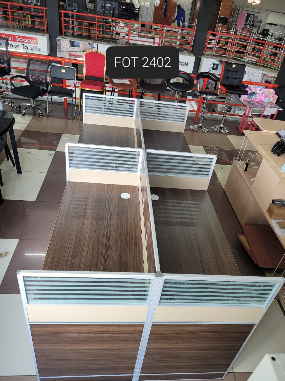 4-Person Office Workstation (FOT 2402) with Privacy Glass