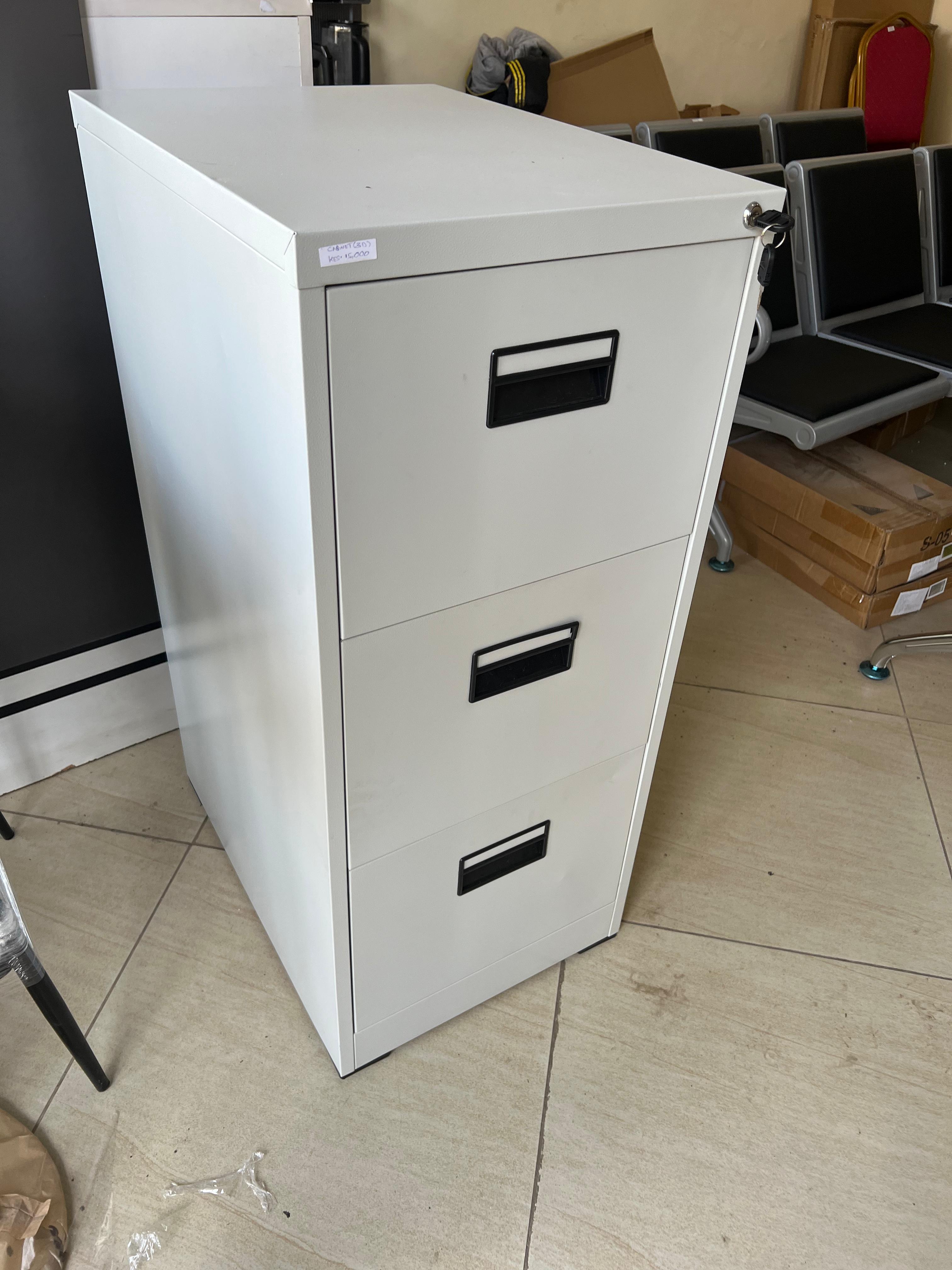 Durable steel filing cabinet with central lock and anti-tilt safety; smooth