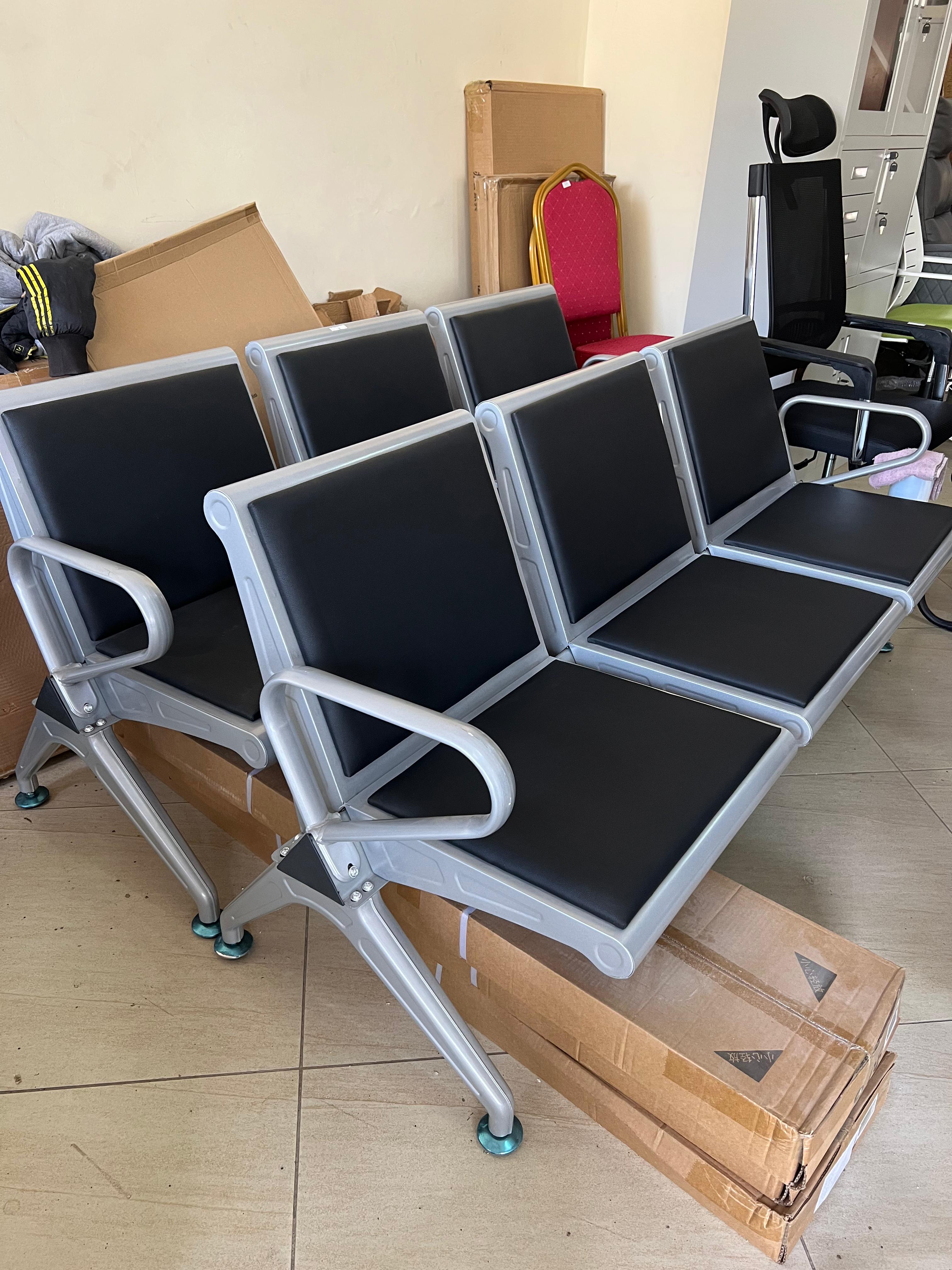 Airport-style 3-seater bench with sturdy alloy frame, perforated back panel